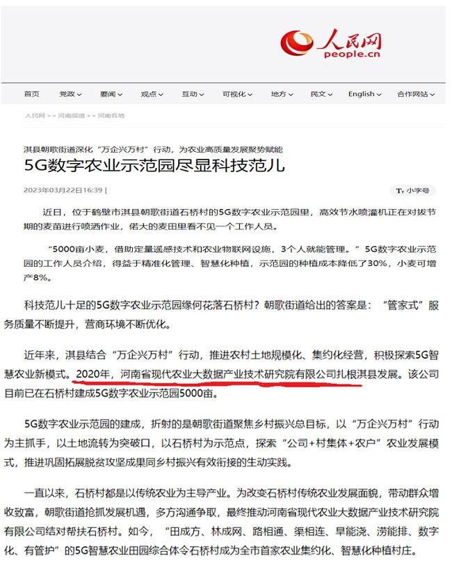 河南省現(xiàn)代農(nóng)業(yè)大數(shù)據(jù)產(chǎn)業(yè)技術(shù)研究院有限公司被人民日?qǐng)?bào)等媒體報(bào)道