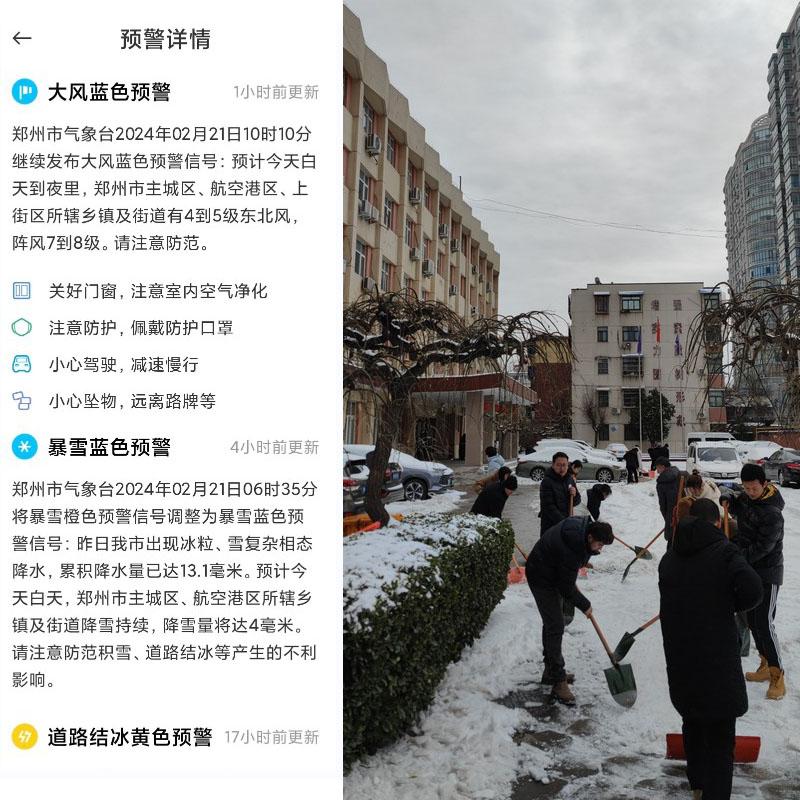 20日以來(lái),我市遭遇雨雪冰凍天氣,氣象部門(mén)也連續(xù)發(fā)布了暴雪橙色、藍(lán)色預(yù)警,道路結(jié)冰黃色預(yù)警、大風(fēng)藍(lán)色預(yù)警。為消除極端天氣對(duì)正常生產(chǎn)生活秩序帶來(lái)不利影響和安全隱患,2月22日上午,物理所公司組織干部職工對(duì)家屬院、辦公區(qū)域及院門(mén)口道路進(jìn)行除雪清冰服務(wù)活動(dòng),為廣大職工及居民營(yíng)造了安全、有序、文明、暢通的環(huán)境。