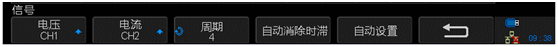 4、分別按下“電壓”和“電流”軟鍵,對應設置CH1為電壓通道,CH2為電流通道。