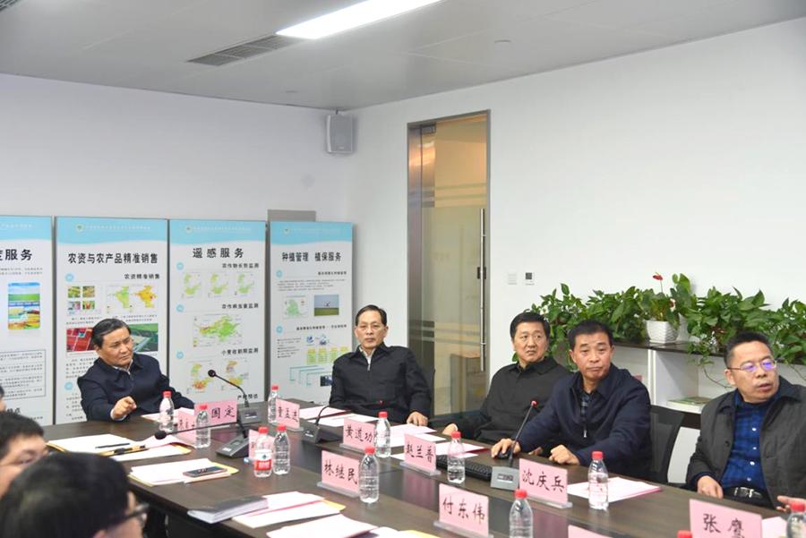 2月26日下午,副省長武國定一行到河南省農業(yè)大數據應用產業(yè)技術研究院調研。省政府副秘書長朱良才、省農業(yè)農村廳副廳長劉保倉,省科學院院長童孟進、書記黃道功參加調研。