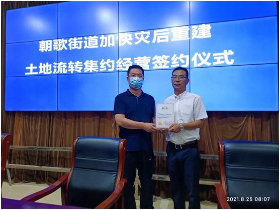 簽約儀式上,朝歌街道辦事處黨工委書記常連峰、省農(nóng)業(yè)大數(shù)據(jù)研究院總經(jīng)理張鷹分別發(fā)表致辭后簽訂了《1.1萬(wàn)余畝土地流轉(zhuǎn)合同》。最后,常連峰書記為張鷹總經(jīng)理頒發(fā)了“鄉(xiāng)村振興發(fā)展顧問(wèn)”聘書。